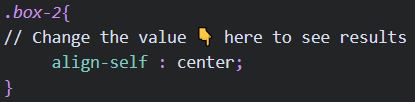 align-self: flex-start;align-self: flex-end;align-self: center;align-self: stretch;align-self: baseline;align-self: auto;Take a Break