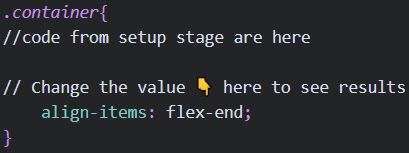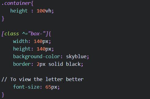 So, apply the display: flex inside the .container class. And place the letters at the center of the box like this:
