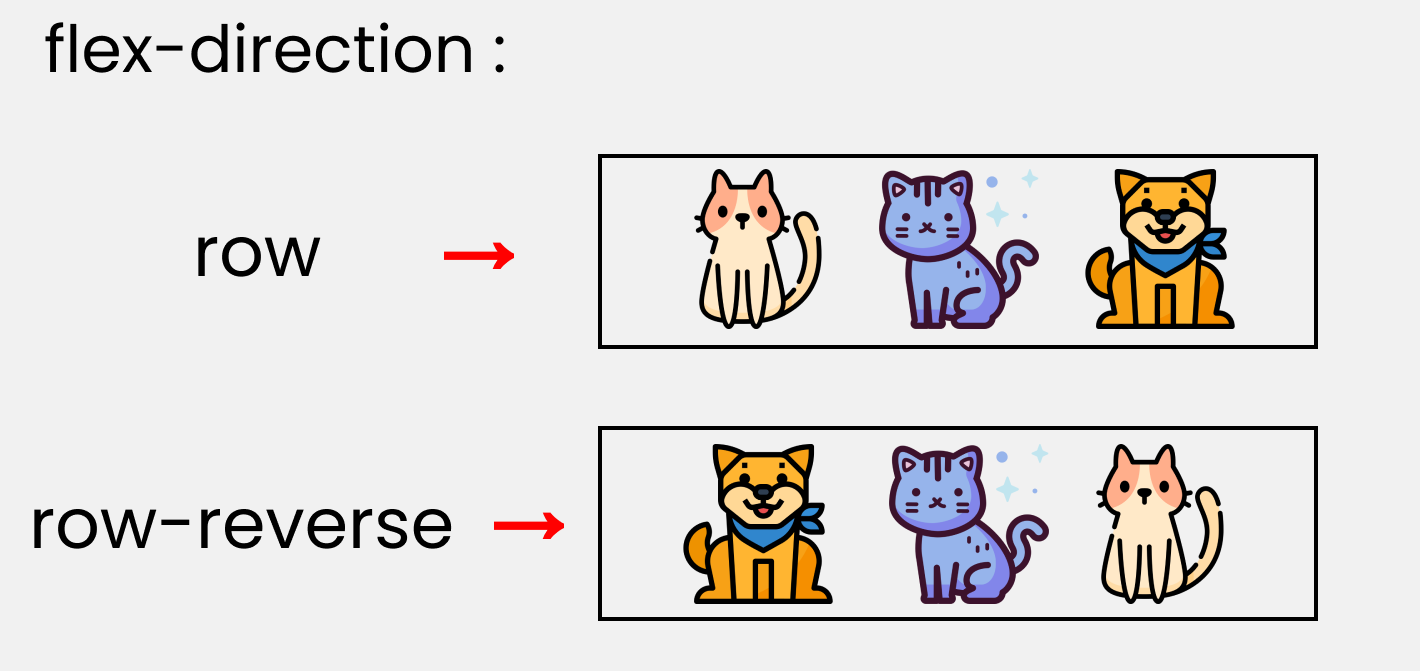 This property allows us to set the direction and orientation in which our flex-items should be distributed inside the flex-container.